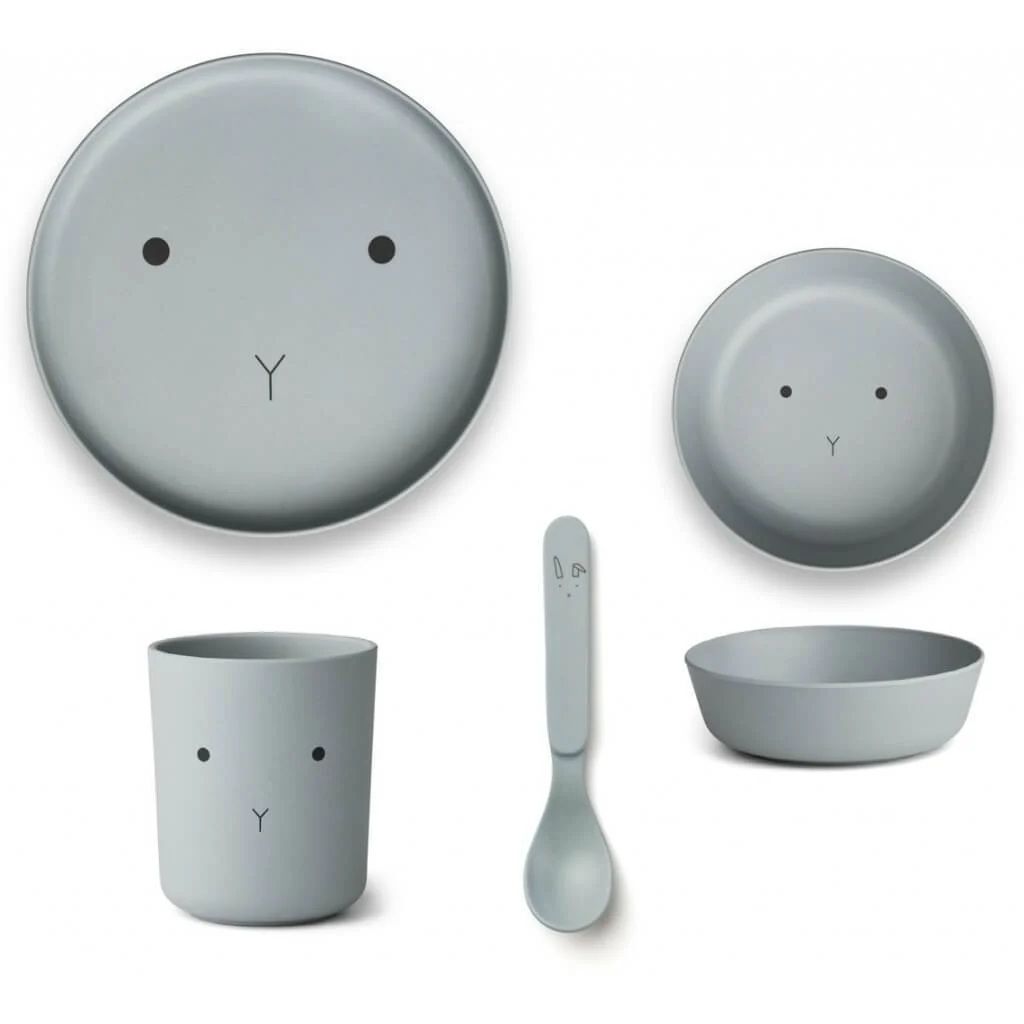 Цей набір посуду з бамбука ідеально підходить для сніданку, обіду та вечері – він м'який на дотик, надзвичайно прохолодний і робить їжу веселішою. Крім того, він надзвичайно практичний, оскільки його можна мити в посудомийній машині. Набір доступний у різних версіях тварин. 45% бамбукового волокна / 25% меламіну 25% кукурудзяного порошку / 5% деревного волокна Розміри: Тарілка: D 20 / H 1,4 см Миска: D 15 / H 4,7 см Чашка: D 7,5 / H 9 см Ложка: L 13 см