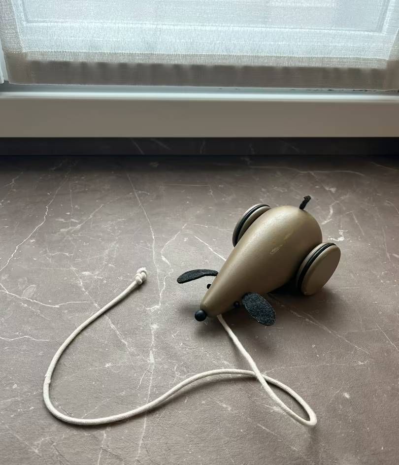 Дерев'яна іграшка тягач від Liewood у формі милого собаки.