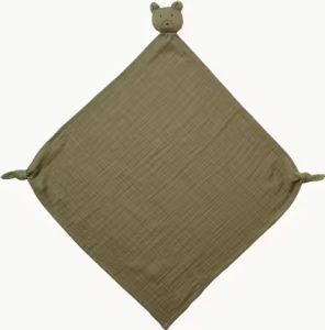 - Муслінова ковдра Robbie з ведмедиком кольору хакі — це м'яка та затишна плюшева пеленка для вашої дитини.