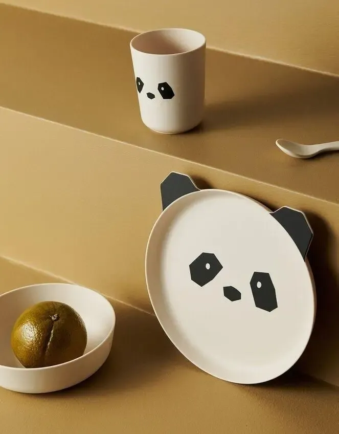 Цей стильний і веселий набір із чотирьох частин складається з тарілки, миски, чашки та ложки з чудовим малюнком обличчя панди. Ідеально підходить для сніданку, обіду та вечері, вони м’які на дотик, не містять токсинів і надзвичайно практичні (можна мити в посудомийній машині!).