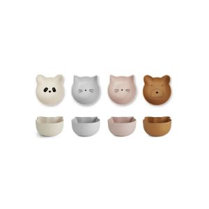 Набір з 4х мисок Rex snack bowl з усіма улюбленими тваринами від Liewood сподобається вашій дитині, ідеально підходить для годування або невеликих закусок. Набір із чотирьох різних кольорів. (білий, сірий, рожевий, карамельний)